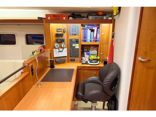 This vessel is also equipped with a comprehensive safety package, including a Liferaft, Dan buoy, lifebuoy, eight life jackets, a fire blanket, fire extinguishers, and flares. EPIRB Simrad.