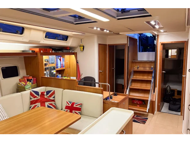 The Hanse 575 offers comfortable accommodations, featuring three well-appointed double cabins and two heads, making it ideal for extended voyages with family or friends. Equipped with an electric windlass, it enhances convenience during anchoring and docking.