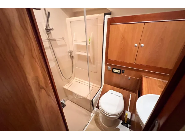Cuenta con aire acondicionado y calefacción diésel en toda la embarcación. La altura interior es de aproximadamente 2,0 metros, lo que proporciona una excelente sensación de amplitud y confort a bordo.