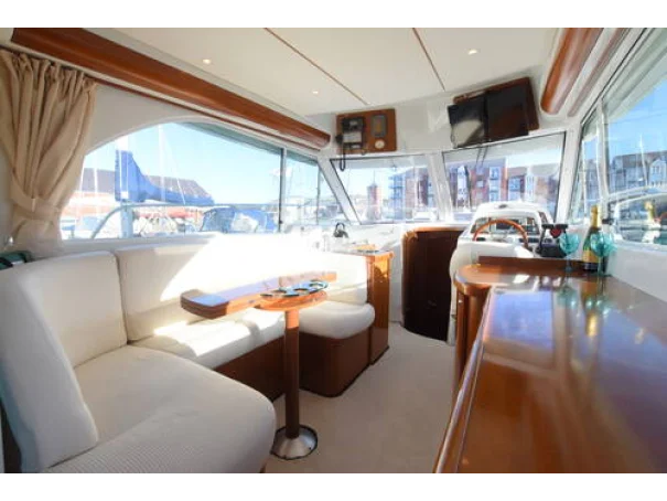 The spacious saloon, fully equipped galley, and comfortable cabins make her ideal for day trips or longer cruising in style.
