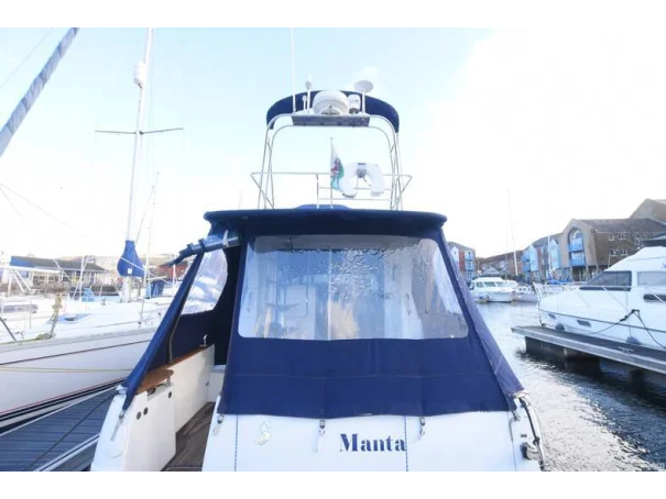 The Beneteau 9.80 “Manta” is a beautifully maintained 2005 motor boat combining comfort and performance. Powered by twin Nanni inboard engines (~1100 hours) she cruises at 18 knots, reaching 24 knots. This vessel has been carefully used around Cardiff and benefits from consistent maintenance, including engine service, antifouling, polishing, new anchor chain, diesel heater, gas lines, and a host of other upgrades.