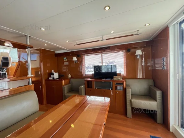 XBOAT ref :6230. mon Swift Trawler 52 réunit dans une synthèse éblouissante toutes les qualités que je recherchais dans un bateau de 52' avec 3 cabines et un flybridge. Un carré large confortable et accueillant, une très belle timonerie avec son poste de veille (identique à la marine professionnelle) et un accès aux passes avants tribord et bâbôrd par des portes latérales (rare sur cette taille de navire) et très très pratique pour les allers et venues vers l'avant ou l'arrière du bateau. A noter que le cockpit est équipé d'un troisième poste de commande des moteurs et des propulseurs très pratique encore pour les accostage et les manoeuvres de port.