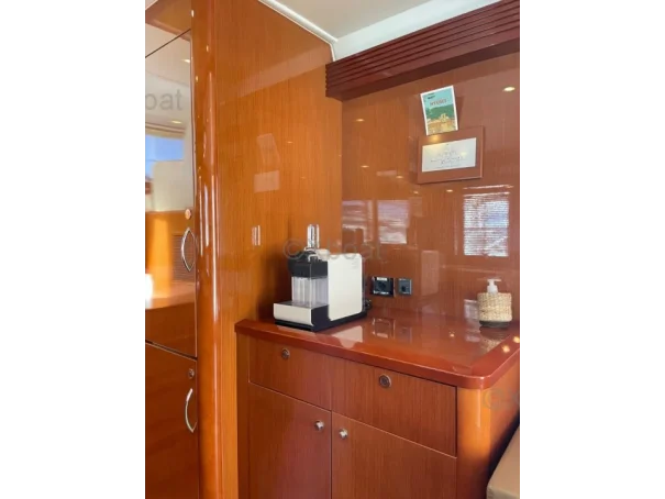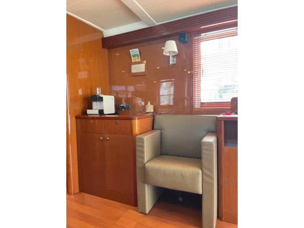 Le fly bridge est équipé d'une plancha d'un point d'eau et d'un frigo. L'annexe se met à l'eau à l'aide d'une grue très facile d'utilisation ce qui ibère entièrement la plage de baignade à l'arrière.