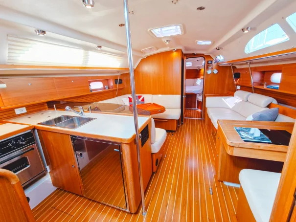 Spacious and well-planned, the Catalina 445 offers a 3-cabin, 2-head layout. The forward owner's cabin features an innovative tilting bed for added comfort, while the portside cabin offers flexibility with a convertible double berth or storage. The saloon and galley areas are both well-appointed and practical for extended cruising or liveaboard life.