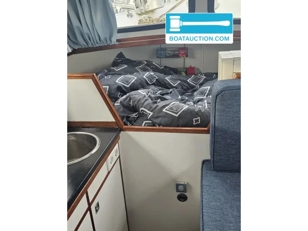 L'hébergement de ce Holtmankruiser est conçu pour le confort lors de séjours prolongés à bord. Il y a quatre couchages fixes et deux couchages supplémentaires disponibles. À l'avant, un lit fixe a été aménagé. L'espace intérieur est équipé d'un coin repas, de matelas, de rideaux et de nouveaux coussins. La cuisine est équipée d'une cuisinière, d'un réfrigérateur, d'un micro-ondes et d'un congélateur. Pour le confort sanitaire, il y a une installation de toilettes électriques, dont l'évacuation se fait directement dans l'eau libre. De plus, il y a une douche et un approvisionnement en eau chaude.