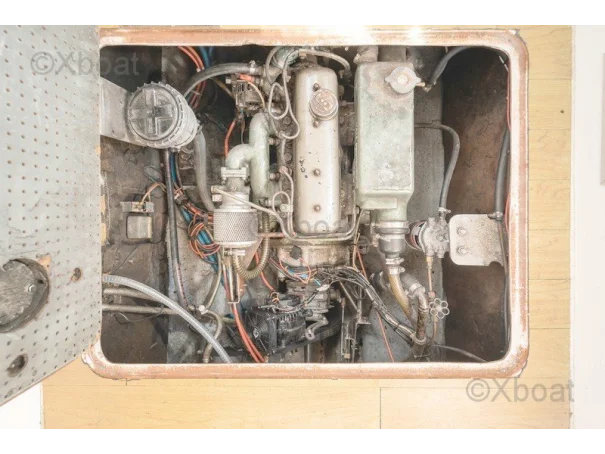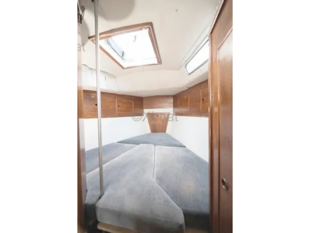 Voiles en bon état et électronique de navigation complète : pilote automatique, GPS, traceur Raymarine, VHF, AIS émetteur, régulateur d’allure Hydrovane, anémomètre et sondeur.