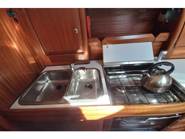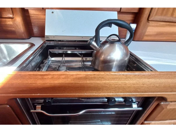 • Galley: Pressurised water, gas hob, oven, galley sink, fridge