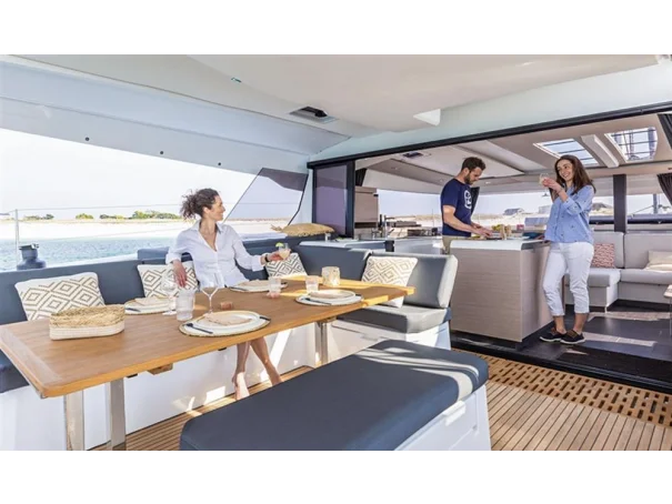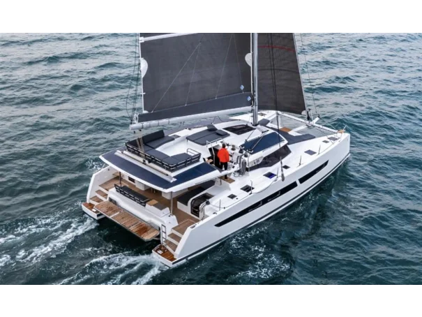 The Fountaine Pajot design office, in collaboration with the Olivier Racoupeau Design team of naval architects, imagined the Aura 51 to be able to accommodate a large surface area of solar panels without compromising on design.