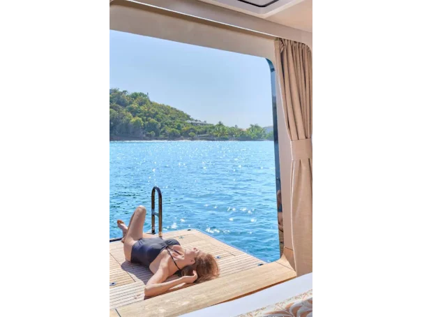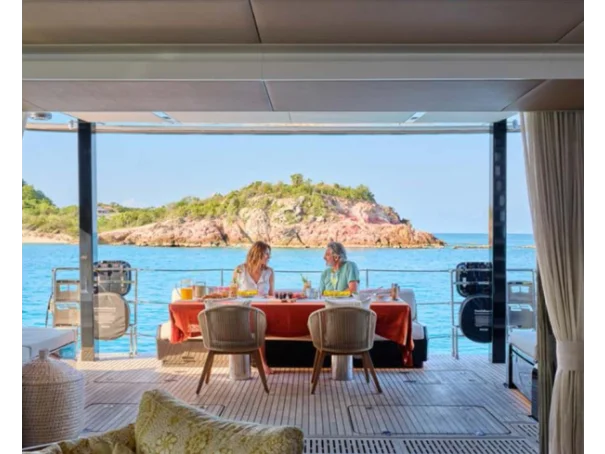 With her generous beam, the 80 Sunreef offers immense alfresco relaxation areas and vast interiors. All the spaces on board can be entirely customized and adapted to match any navigation plan and lifestyle.