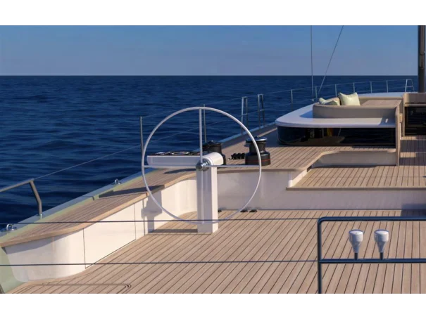 Christened âY8 DTâ, this 80-foot yacht uses the Y8 YT hull and offers new options such as a different tender garage and more minimalistic design. With its well-protected cockpit, the new Y DT is a yacht for comfortable transatlantic passages yet is equally suited for owners yearning to race.
