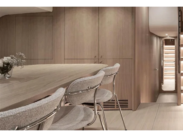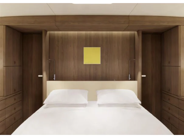 With its modular construction, the layout can be adapted to the ownerâs wishes. The master suite, for example, can be installed in either the stern or the bow. The number of guest cabins is also variable - up to five are possible.