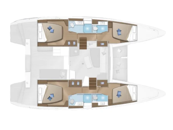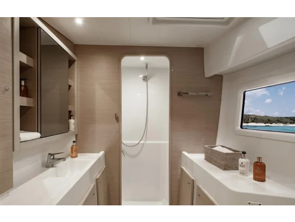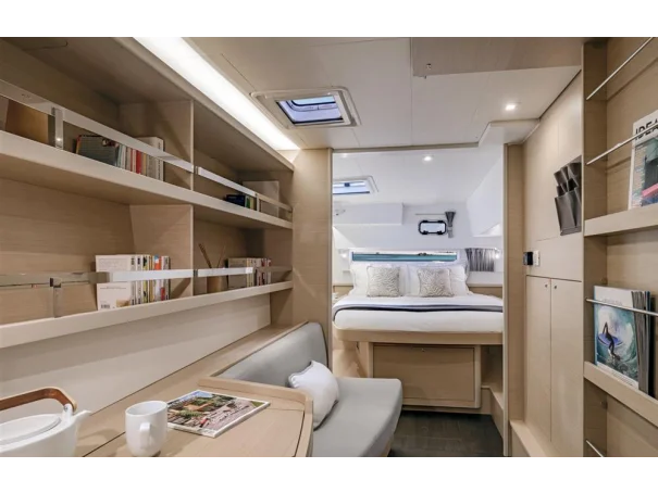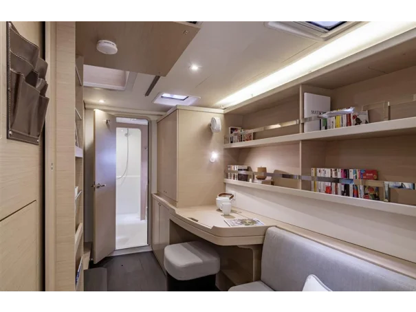 The cockpit extends onto a large terrace, flush with the saloon, providing a living area that is at once spacious and inviting. Well sheltered and ventilated, it offers a permanent invitation to relax.