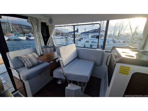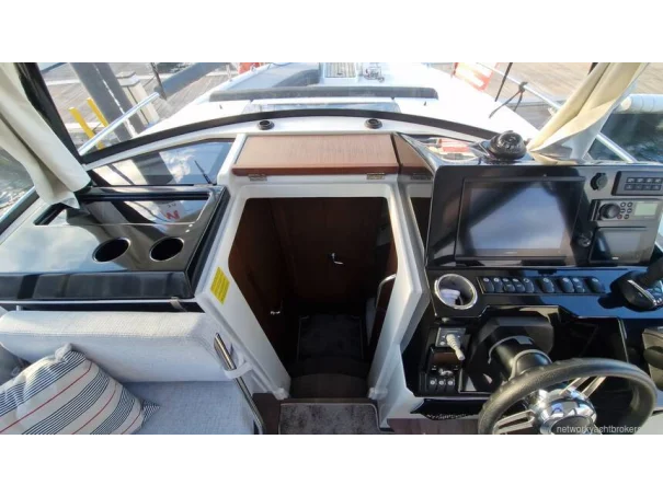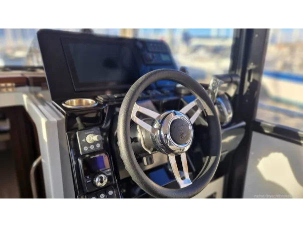 Accommodation includes two double cabins, a bright wheelhouse with 360° visibility, and a large, versatile cockpitideal for sport cruising, fishing, or family adventures. Additional features include a bow thruster and heating, ensuring comfort and control in all seasons.