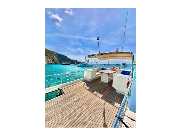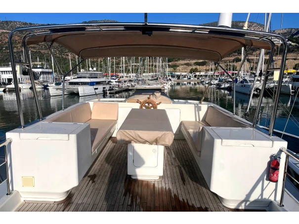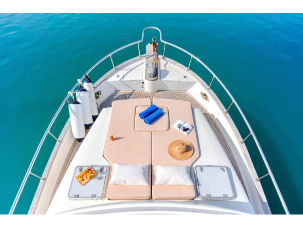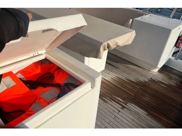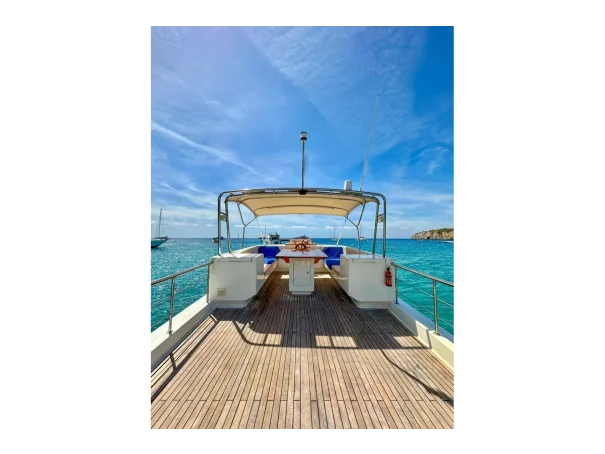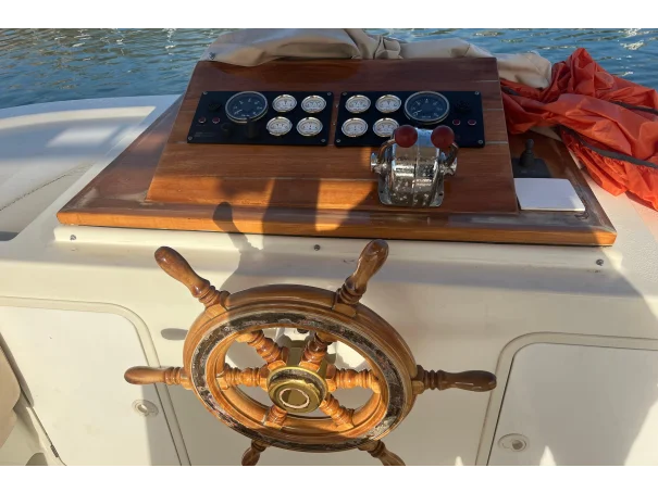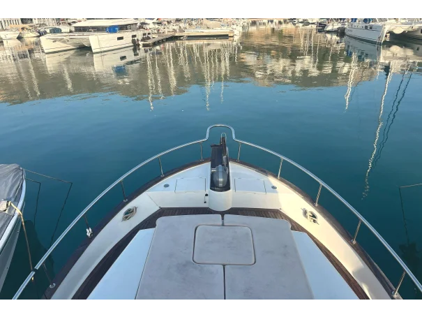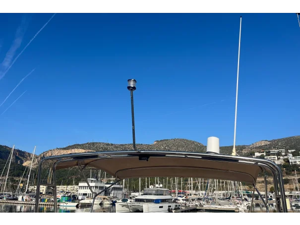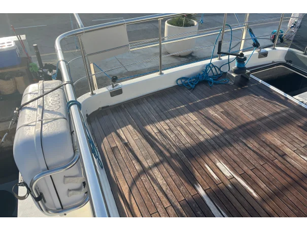 El barco se sometió a una importante remodelación en 2015. El flybridge, las cubiertas de teca, los pasamanos de acero inoxidable, la cocina y todo el barniz del salón se renovaron por completo.