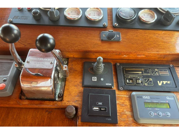 The throttle controls are not mounted. All the equipment required for the dual helm is on board, but we have never made the fine adjustments needed to fully operationalise it.