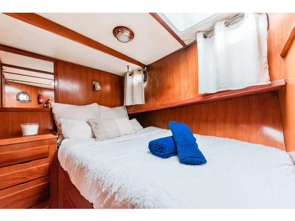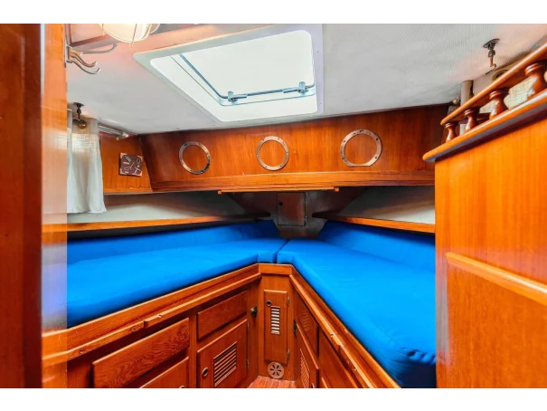 Powered by twin Ford Lehman 120-hp engines, the boat delivers a comfortable cruising speed of 7.5 knots. With 1600 L of fuel and 1,000 L of fresh water, this Eurobanker is equipped for long cruising or simply a day out sailing with friends.