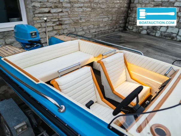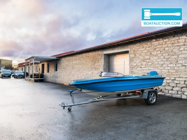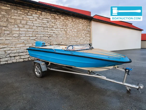 La vente comprend une remorque routière avec la plaque d'immatriculation 771YNN. La remorque est à essieu unique, non freinée et mesure 325 x 240 cm. Le poids est de 350 kg. La remorque est fonctionnelle et équipée d'un treuil manuel. Le bateau et la remorque sont entièrement enregistrés et utilisables pour le transport.