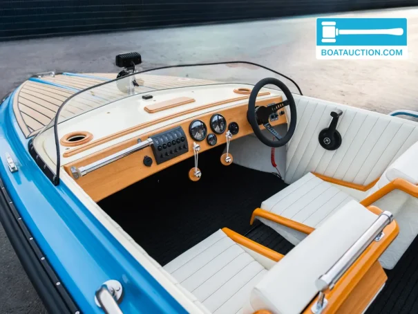 Le bateau est propulsé par un moteur hors-bord Evinrude de type E50BELCTA d'une puissance de 55 ch. Ce moteur à deux temps dispose de deux cylindres et est démarré électriquement. Le moteur a été entièrement révisé et ajusté en novembre 2025. Le contrôle est équipé d'une manette des gaz et d'un levier de vitesses modernes, adaptés à ce moteur. Le bateau dispose d'un système de démarrage/arrêt sans clé avec un algorithme de sécurité séquentiel. Le tableau de bord comprend des interrupteurs pour l'éclairage de navigation, l'éclairage intérieur, les points de charge USB, l'alimentation des instruments, la pompe de cale et le klaxon.