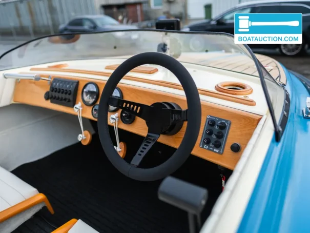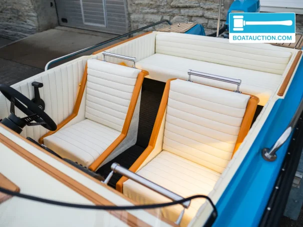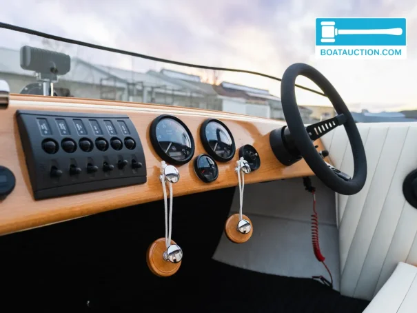 L'intérieur a été entièrement rénové et adapté aux exigences modernes. Les sièges sont recouverts de cuir synthétique maritime résistant aux rayons UV, à l'eau salée et à l'humidité. Le tableau de bord et le cockpit sont fabriqués en bois de hêtre massif et finis avec du vernis, tandis que le panneau supérieur du tableau de bord et le panneau de miroir sont en contreplaqué résistant à l'eau, enduit de résine époxy. Le sol est recouvert d'un tapis en caoutchouc facilement amovible. Un éclairage LED est installé pour une visibilité et une sécurité accrues.