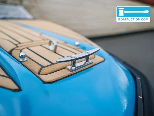 Avec une longueur de 4,5 mètres et une largeur de 1,6 mètre, le Finn V-Boat offre un agencement compact mais fonctionnel. Le tirant d'eau de seulement 35 cm permet de naviguer près des rives peu profondes, ce qui rend le bateau utilisable pour des loisirs dans divers environnements aquatiques. La coque est fabriquée en polyester et a été récemment repeinte avec un système de peinture multicouche, comprenant une couche d'apprêt Teamac, deux couches de peinture et deux couches de vernis. Le bateau est équipé d'un pont en teck synthétique (Deckfab), ce qui contribue à son apparence et à sa facilité d'utilisation.