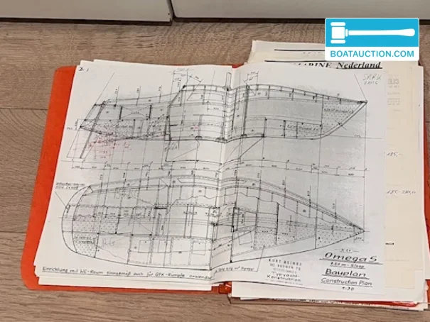 Ce Omega 750 est proposé comme projet d'aménagement, avec une grande partie des pièces nécessaires déjà présentes. Le bateau dispose d'une pompe de cale manuelle, d'une ancre et d'un solide garde-corps autour du pont. La préparation technique pour une installation moteur est entièrement réalisée : tuyaux, raccordements et fondation moteur sont déjà en place.