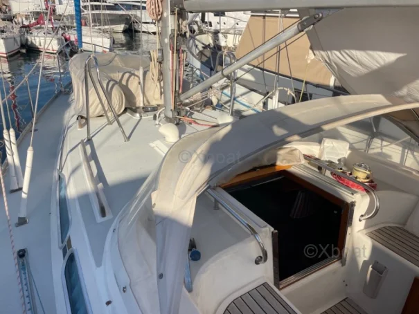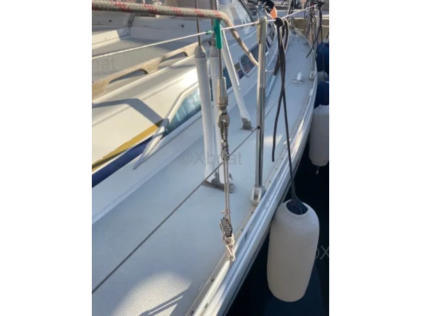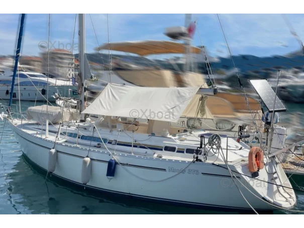 XBOAT ref :6251. je vends mon Moody 376 à regret pour cause de santé après 10 ans de magnifiques croisières en Méditerranée. J'ai remplacé le jeu de voiles d'origine par un jeu de voiles Génois et Grand Voile neufs en 2017. J'ai fait installé à la même date un propulseur d'étrave bien pratique pour les manoeuvres de ports (il est alimenté par une batterie dédiée et son chargeur), tout l'accastillage de pont est de grande qualité, le gréement est équipé d'un étai largable et de son ridoir pélican et son foc de route, le mat est entièrement équipé d'échelons rétractables bien pratique pour la surveillance et la maintenance générale du gréement et de la tête de mât, l'électronique de navigation a aussi été remplacée en 2017, le pilote automatique est performant, tout est prévu sur le pont pour les déplacements en toute sécurité et par tous les temps, l'aménagement intérieur offre un confort exceptionnel en navigation et aussi au mouillage avec ses deux cabines et ses 2 cabinets de toilettes ensuite, les planchers ont toujours été protégés par une moquette clipsable et lavable, le carré offre une banette transformable en lit double sur bâbord et une couchette simple sur tribord, chauffage Airtronique gas oil air pulsé dans tout le bateau.