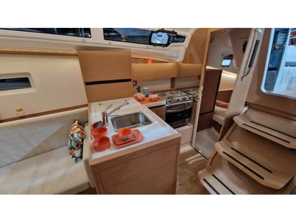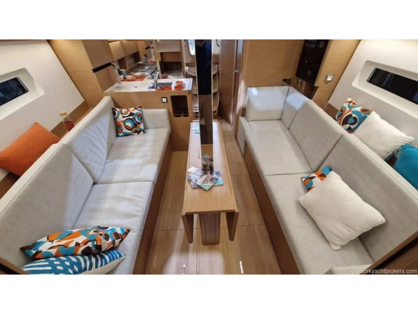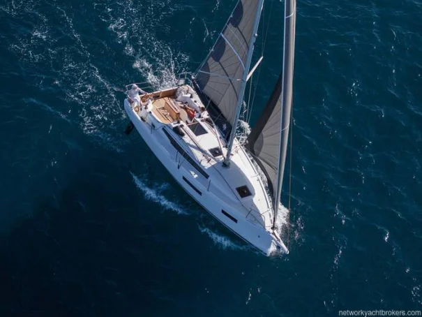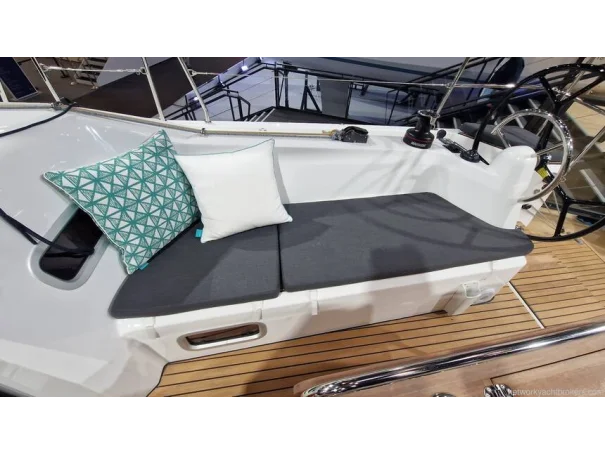 Sails: Semi-battened mainsail (31.6 m²) and furling genoa (23.4 m²) in High Strength Dacron®, with UV protection.