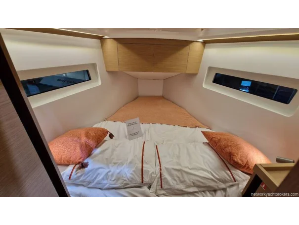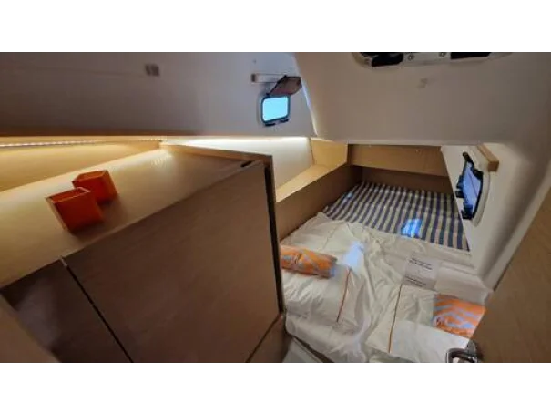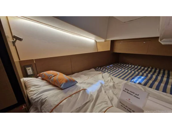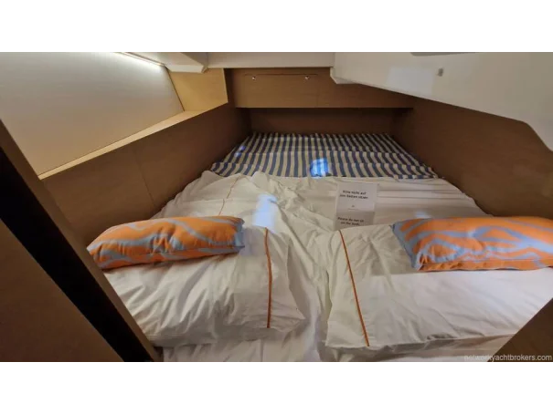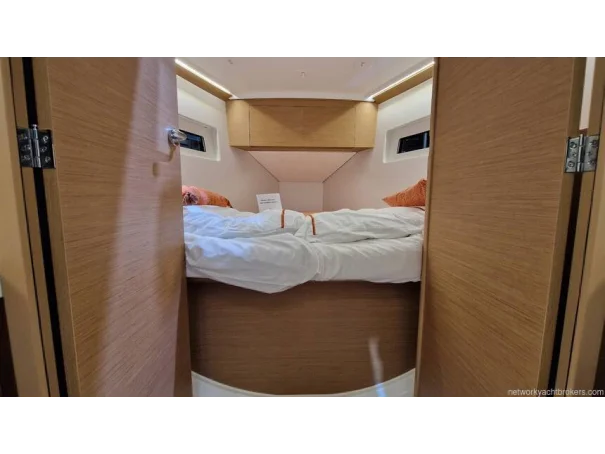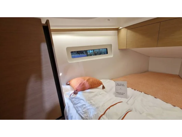 Forward Cabin: Large double berth (2.01 x 1.86 m), storage lockers, indirect LED lighting.