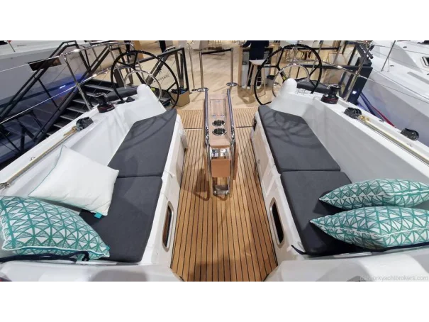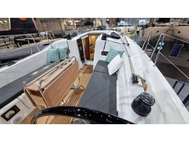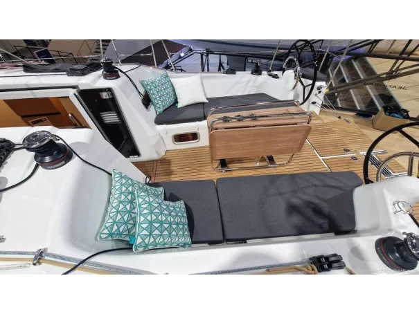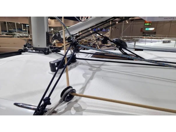 Sail Handling: Harken® winches (2 x 40.2 STA for genoa, 1 x 35.2 ST on coachroof to starboard and electric winch on coachroof to port), Spinlock® jammers, German mainsheet system.