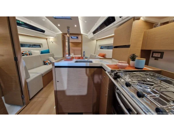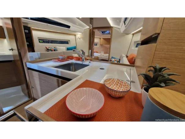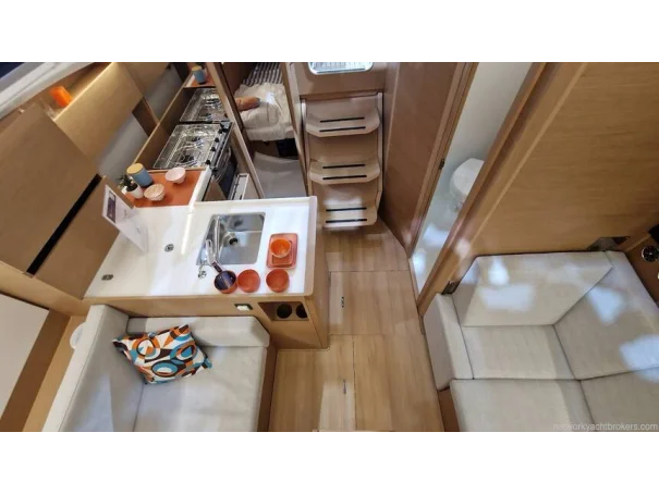 Safety & Comfort: Gas detector, manual and electric bilge pumps, rigid boom vang, electric windlass (1000 W). Diesel blown air heating, CE category A6/B8/C10/D10.