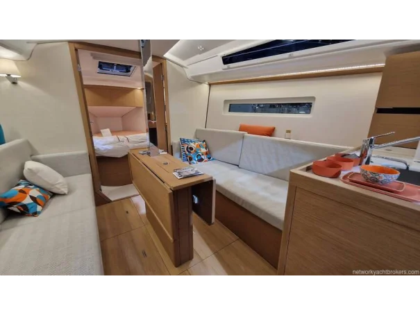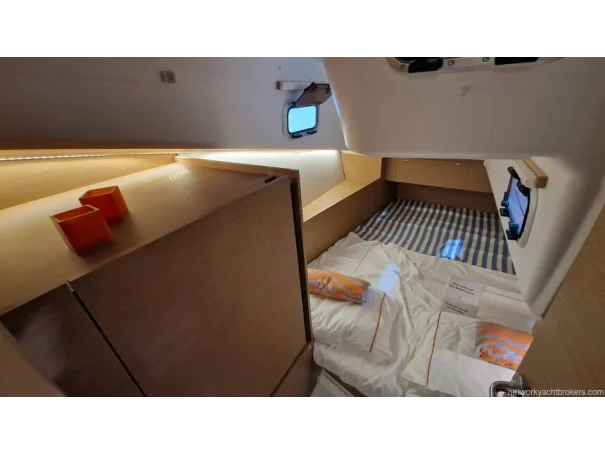 Upgraded Preference Trim Package: Cockpit halyard bags, Indirect LED Lighting and lamps on bulkhead, courtesy lighting in cockpit, upholstered bulkheads, Clock and barometer, blinds for hatches and port lights.