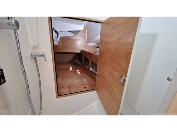 Plumbing: Pressurised water system, electric flush toilet with quiet flush, chromed faucets, hot water heater, 80 L holding tank.