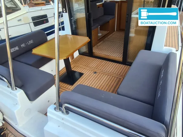 À l'extérieur, le Derone 990 est doté d'un pont en teck, d'une grande plateforme de baignade avec échelle, d'un bimini, d'une table de cockpit, d'une douche extérieure et de sièges confortables avec coussins. Les sièges de proue et de poupe, les pare-battages et les lignes contribuent à la sécurité et à la facilité d'utilisation. Le bateau est livré avec cinq gilets de sauvetage, une bouée de sauvetage et quatre pare-chocs.