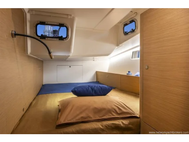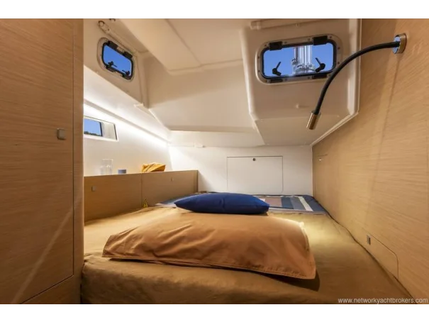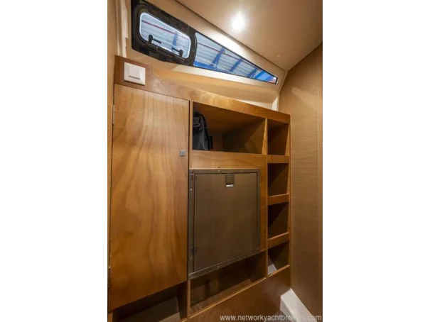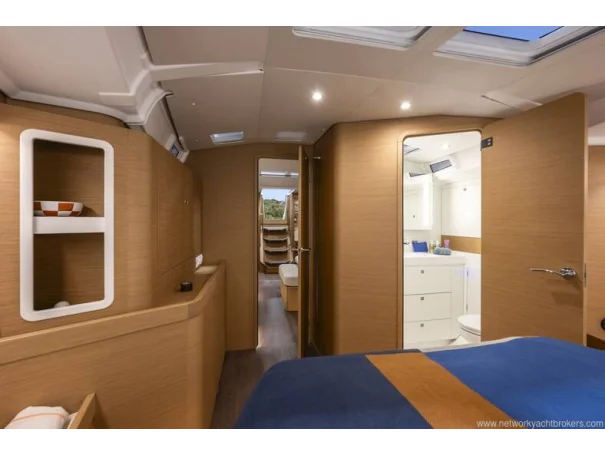 The high-aspect rig, paired with Harken winches and deck hardware, delivers efficient sail handling, while the in-mast furling mainsailfurling genoa, and German sheeting led back to the helm make short-handed sailing a pleasure. The comprehensive Downwind Pack, including rigging for Code 0 / asymmetric spinnaker and bowsprit, ensures this yacht performs just as impressively off the wind as she does upwind.