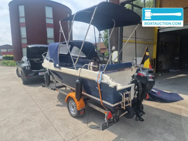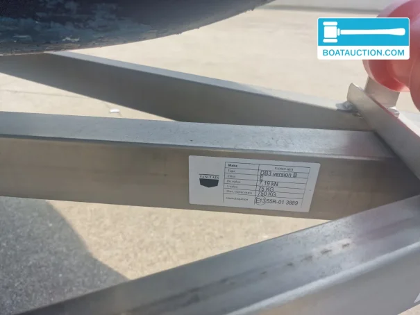 Le Myzyk 480 est livré avec une remorque routière de la marque Van Claes, construite en 2023. Cette remorque est basculante, non freinée et équipée d'un treuil de remorque, ce qui facilite le chargement et le déchargement du bateau. Avec un poids total de moins de 750 kg, cette combinaison peut être tractée par presque tout type de voiture particulière, sans qu'une inspection spéciale ou un permis de conduire soit requis. Cela rend le bateau particulièrement adapté à ceux qui recherchent flexibilité et mobilité.
