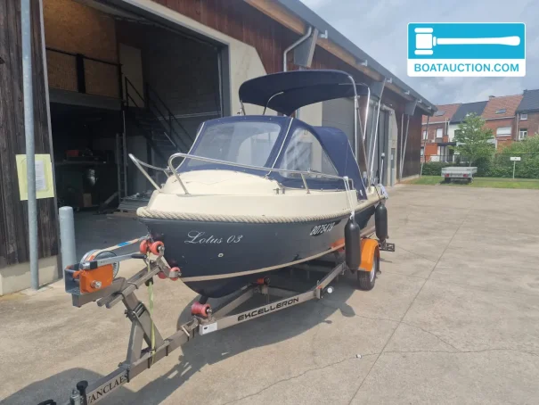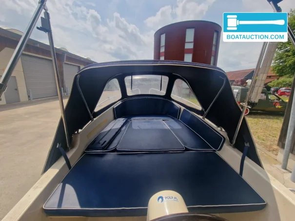 La direction se fait via un volant situé à l'intérieur du bateau, offrant une manipulation claire et confortable. La coque est fabriquée en polyester, un matériau réputé pour sa durabilité et sa facilité d'entretien. Le bateau est équipé d'un seul gouvernail et d'une ancre avec ligne, permettant un ancrage facile dans des endroits calmes.