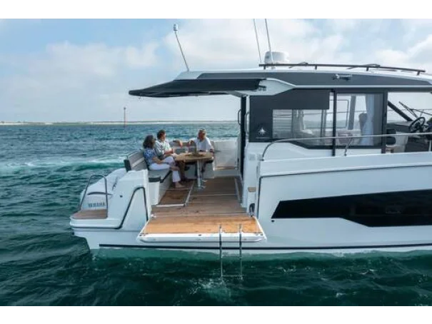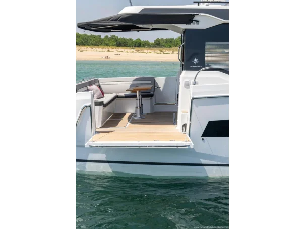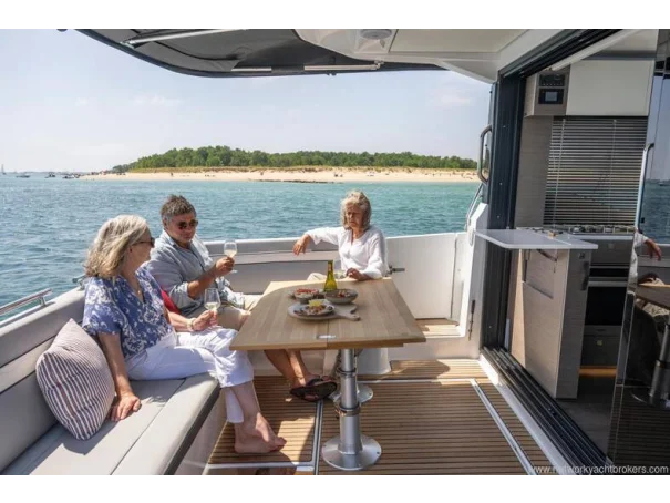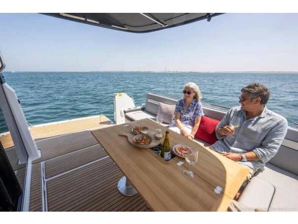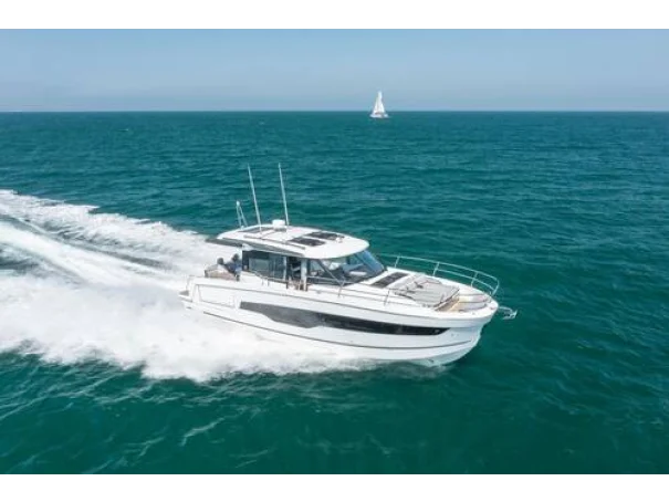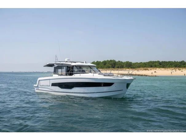 We are delighted to introduce the Jeanneau Merry Fisher 1295 Coupe. As the flagship of the Merry Fisher range, she is designed to impress, offering three comfortable cabins, two well-appointed heads, and a spacious saloon. The aft galley is thoughtfully positioned to serve both the saloon and the aft cockpit seating area, as well as the drop-down side deck, creating an excellent social layout.