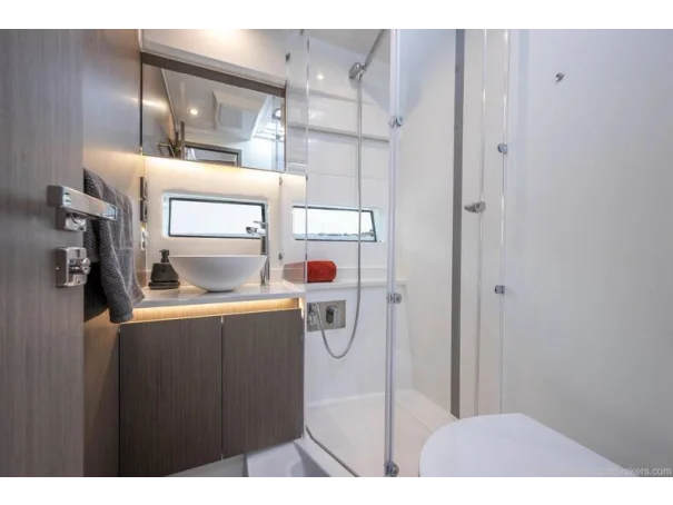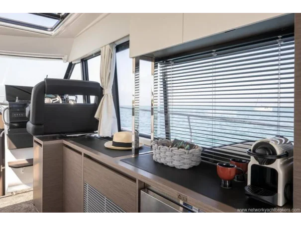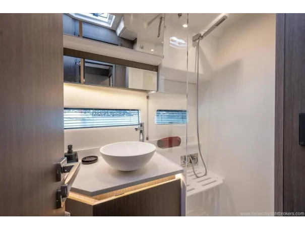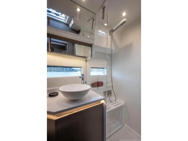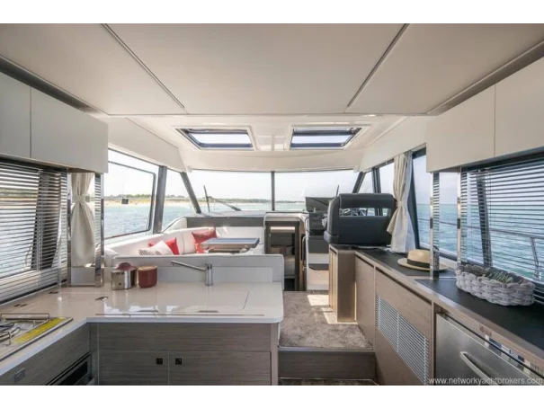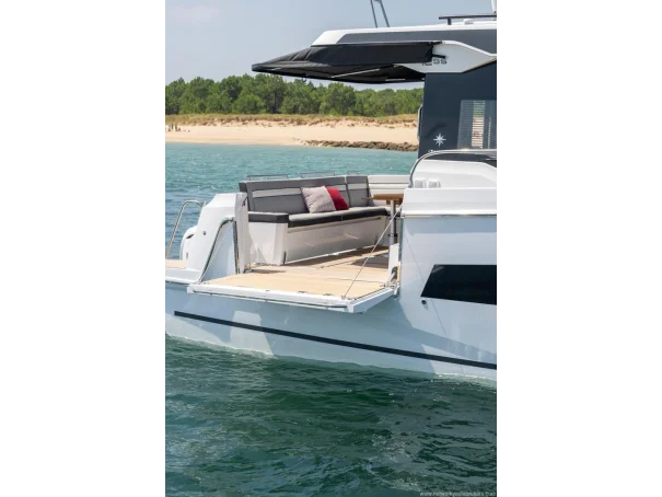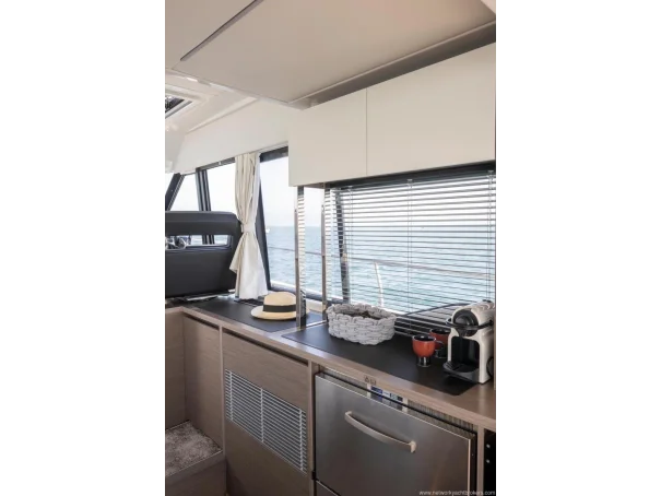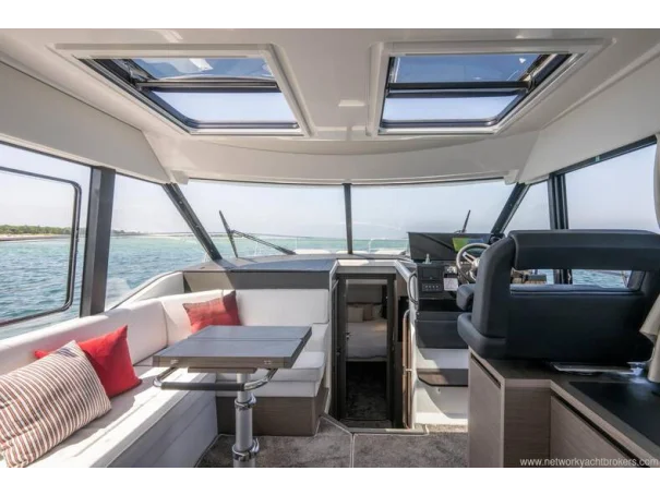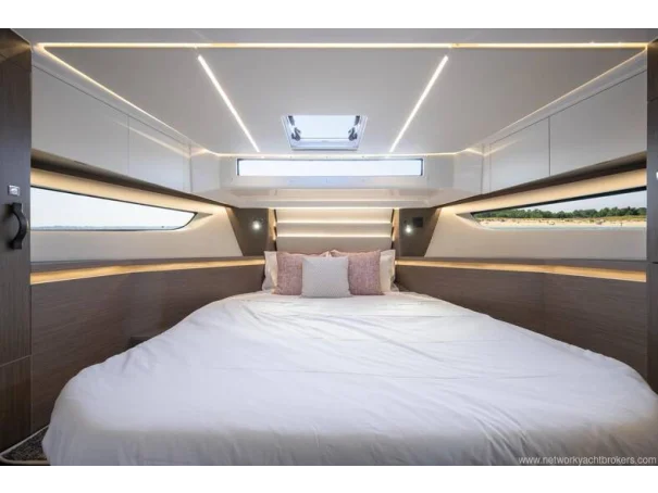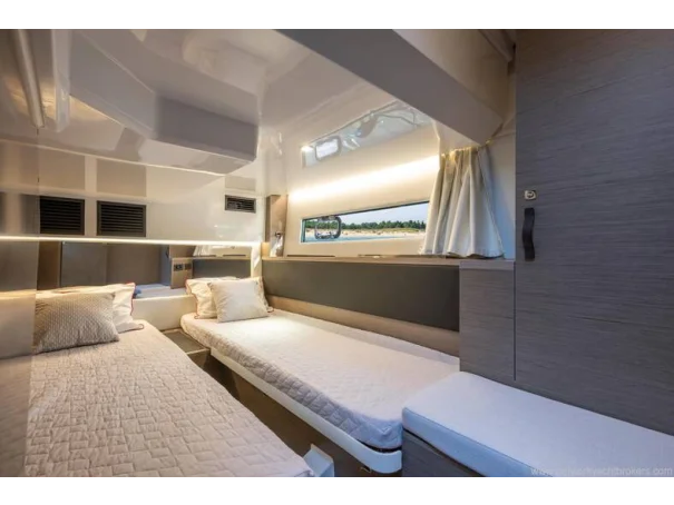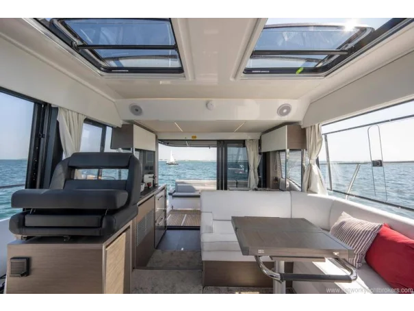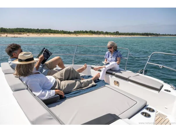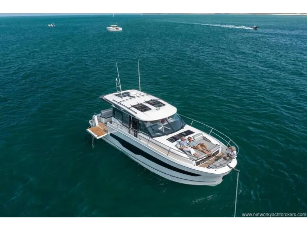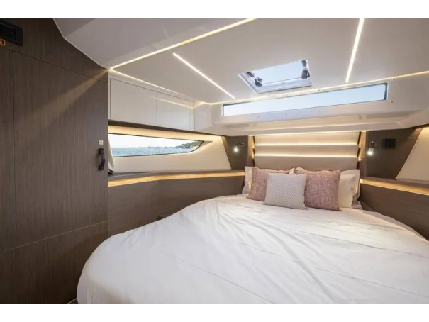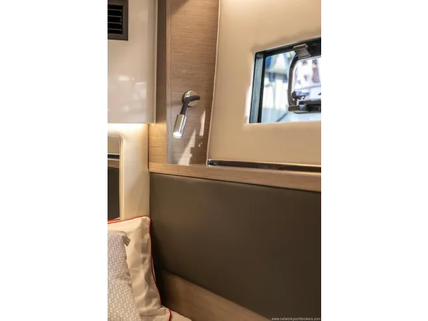 Including: - Control of windlass and chain counter at the helm station - Front sunlounge seatings for 3 persons - Ambiance LED lights (saloon & cabins) - LED ambiance lights in cockpit floor - Removable carpets in corridors and cabins - Twin drawer stainless steel fridge 144L(in lieu of standard fridge 130L) - Electrical trim tabs LENCO (upgraded to Auto Zipwakes) - Sliding window on portside - Aft and bow cockpit covers