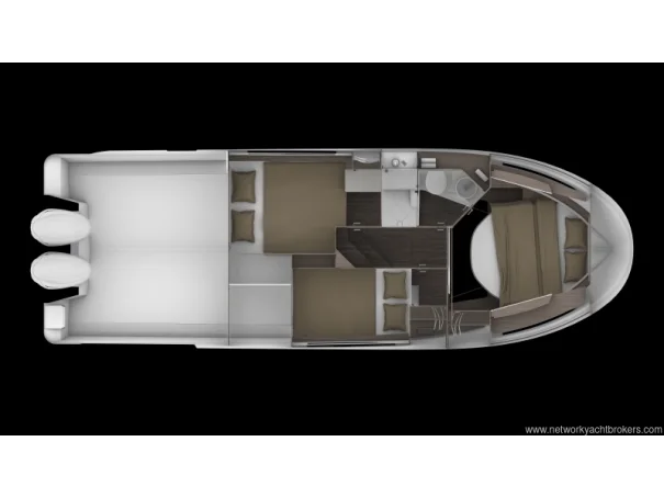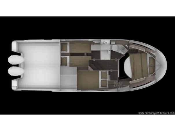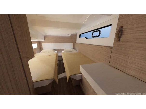 Mattress for 3rd cabin Double berth complement in saloon Overhead storage lockers in the wheelhouse Overhead storage lockers in the front cabin Swivelling system for pilot seat Mechanical : Twin Yamaha 300hp outboard engines Yamaha Joystick Auto Zipwakes Variable bow thruster