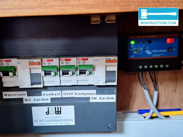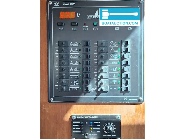 L'installation électrique à bord est étendue et adaptée aux systèmes 12V et 220V. Il y a cinq batteries, alimentées par un chargeur de batterie, un alternateur, un convertisseur, une connexion à quai et un panneau solaire. Cela rend le bateau également adapté pour des séjours prolongés sans alimentation directe à quai. Des équipements de navigation tels qu'un sondeur, une boussole et un loch/speedomètre sont présents, ce qui contribue à une navigation sûre et contrôlée.