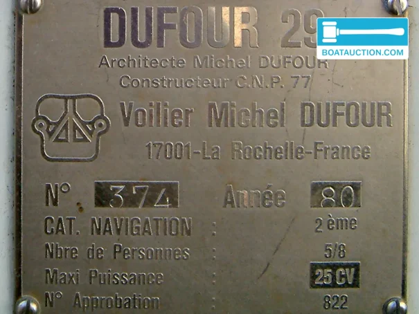 Le Dufour 29 est un voilier classique en polyester, conçu par le célèbre architecte naval français Michel Dufour et construit au chantier de La Rochelle. Cet exemplaire spécifique, numéro de construction 374 de 1980, combine un design intemporel avec des caractéristiques de navigation pratiques et un aménagement confortable. Avec une longueur de 8,95 mètres, une largeur de 2,96 mètres et un tirant d'eau de 1,35 mètre, ce bateau est adapté aussi bien pour les eaux intérieures que pour les zones côtières. La hauteur de mât de 12,5 mètres permet de passer sous la plupart des ponts aux Pays-Bas, ce qui fait du Dufour 29 un choix polyvalent pour les marins qui aiment explorer des zones de navigation variées.