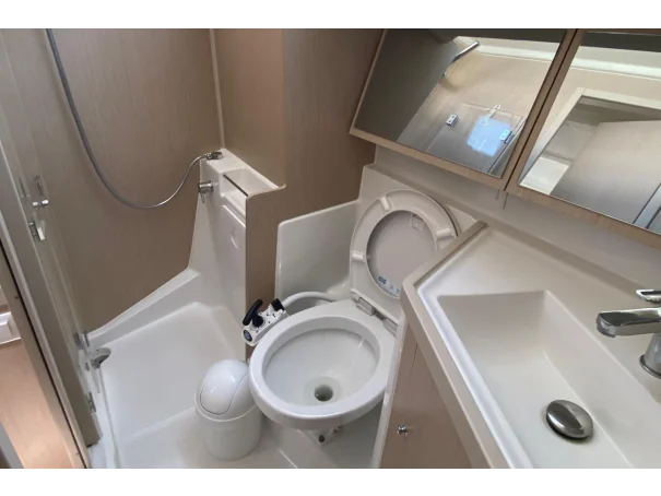 Galley: The large L-shaped galley is spacious and highly functional. It benefits from the focus on owner comfort, often featuring enhanced storage and substantial refrigeration/freezer space, perfect for serious liveaboard meal preparation.