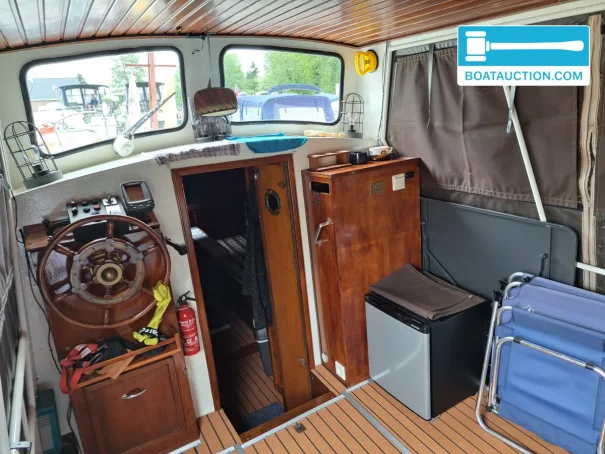 La direction se fait depuis le poste de pilotage intérieur avec un volant, assurant une manipulation abritée et confortable. Grâce à ses dimensions compactes et son fond plat, le bateau est maniable et facile à manœuvrer, même dans les eaux étroites ou lors de l'accostage. Pour ceux qui recherchent un bateau à l'aise aussi bien sur les lacs que dans les canaux, ce vlet offre un excellent équilibre entre taille et fonctionnalité.