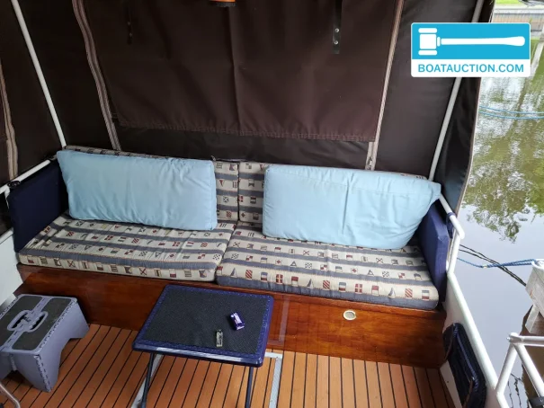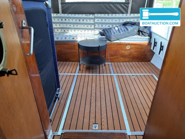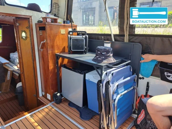 La tente de cockpit a été récemment renouvelée et est équipée de moustiquaires zippables, assurant une ventilation sans insectes. Cela rend le séjour à bord agréable même pendant les chaudes nuits d'été. Le sol a été récemment remplacé, donnant à l'intérieur un aspect frais.
