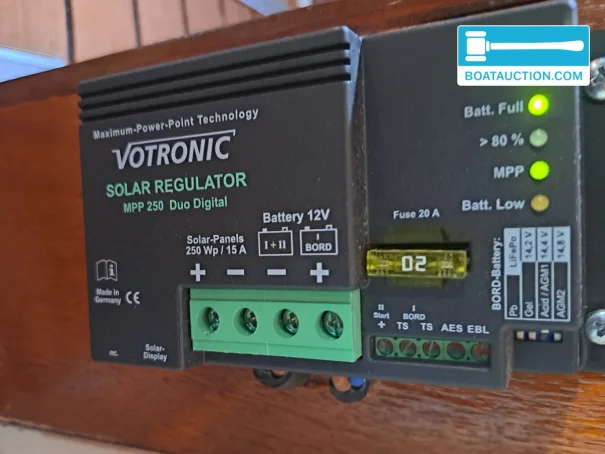 Le Liamer Vlet est équipé d'un panneau solaire, d'un chargeur de batterie, d'une dynamo et d'un onduleur de 300 watts, assurant une alimentation électrique stable à bord. La capacité de la batterie est de 165 Ah, suffisante pour l'éclairage, le réfrigérateur et d'autres équipements électriques pendant le séjour sur l'eau. À l'extérieur, le bateau est équipé d'une ancre avec ligne, de pare-battages et de cordages, et d'une tente de cockpit pratique offrant une protection contre le soleil et la pluie.