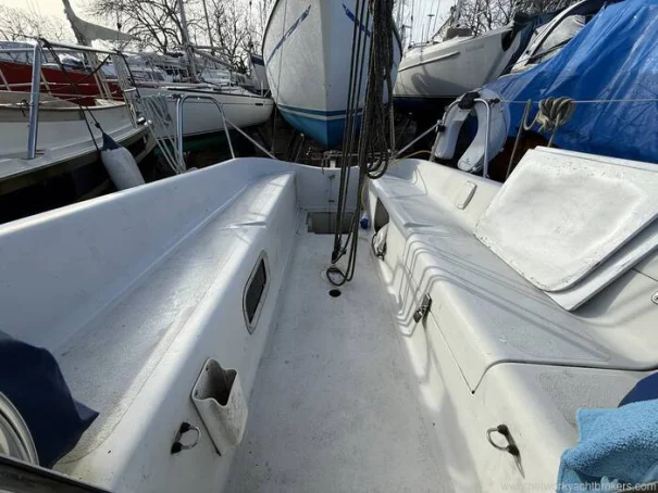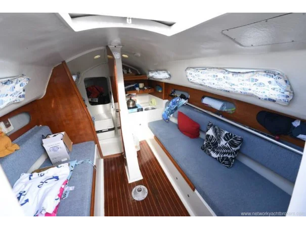 Life ring Saloon table Forward storage area accessed via heads compartment cockpit locker Swim ladder