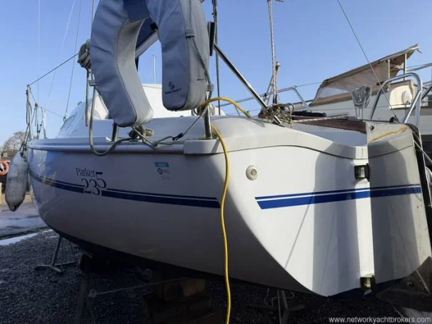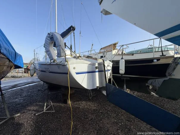 "Sandpiper" is a 2003 Parker 235 version with Lifting Keel and an ePropulsion Spirit 1.0 plus long shaft 1kQW Electrical Outboard Motor. Sandpiper has a large aft double berth, seats to port and starboard (single berths), forward galley area and separate heads compartment with a cassette toilet. New mast and standing / running rigging done in 2019. Cushions re-upholstered 2022, antifoul to be completed early 2026. New leisure battery fitted in 2024.