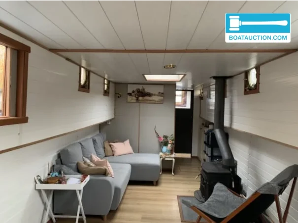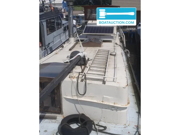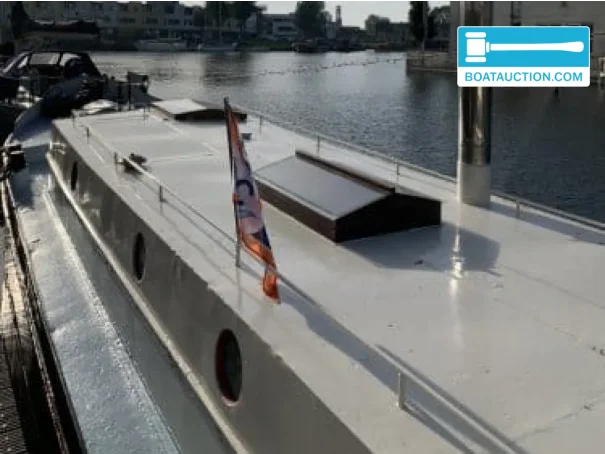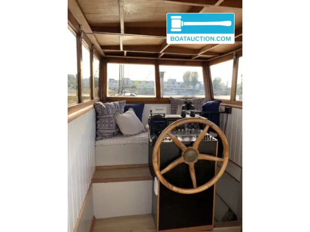 La coque du navire est fabriquée en acier, ce qui contribue à son apparence solide et à son caractère authentique. La hauteur de passage de 2 mètres rend le navire adapté à une large gamme de zones de navigation, y compris les canaux urbains et les voies navigables plus petites. La hauteur sous plafond intérieure est également de 2 mètres, ce qui assure un espace de vie confortable à bord. La position de pilotage se trouve à l'intérieur, avec une barre traditionnelle et un banc pour le capitaine, ce qui contribue à une expérience de navigation détendue.