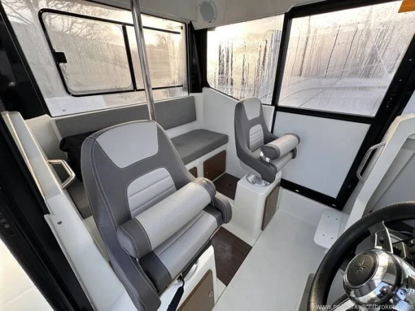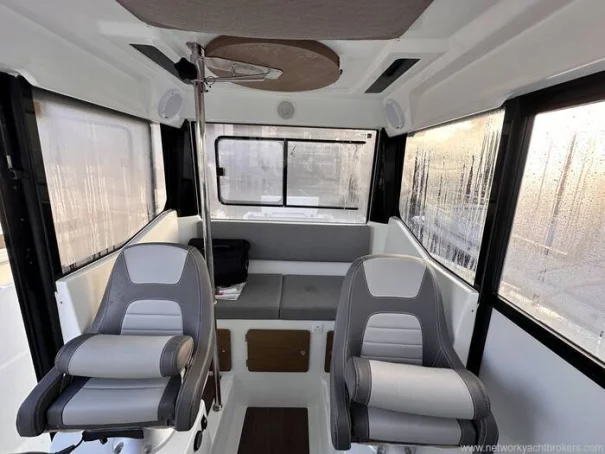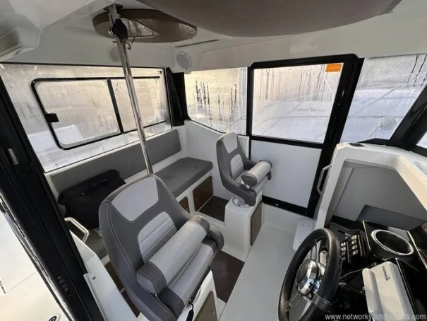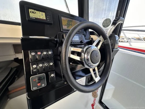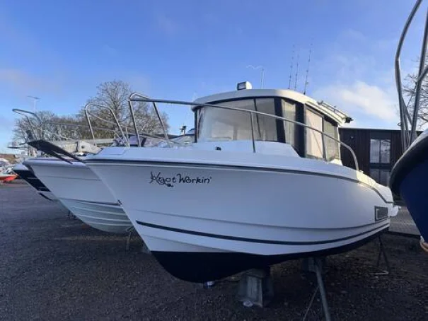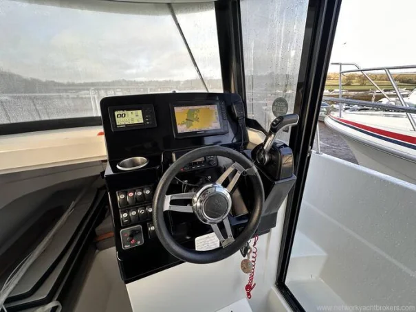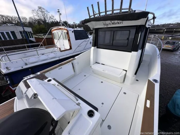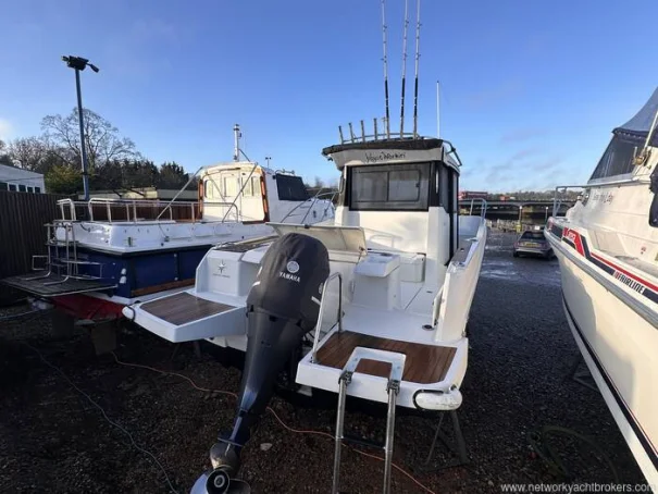 'Knot Workin' is a 2018 model year Merry Fisher 795 Marlin to 2019 specification. This two door version offers easy access to the walk around decks that makes moving around at sea easy and safe with her high guard rails and deep companionways. This example benefits internally from two swivel seats, a bench seat, removable table, sink and a marine head internally. On deck it has all that you need to enjoy fishing but also flexible seating with a rear face bench seat, fold out seats aft, port, electric anchor windlass, search light and more. Using the boat short handed is very manageable thanks to her bow thruster and midship cleats which both aid in berthing the boat. This particular example is also equipped with a fly-by-wire Yamaha engine control system that gives the helm smooth and more precise shifting. Current engine hours are circa 163.
