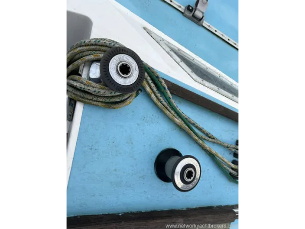 This Westerly GK 24 has a Bermudan sloop fractional rig with an aluminium Masthead deckstepped mast and boom. It has stainless steel standing rigging age unknown, and terelyne running rigging that has been replaced as required. It has a slab reefing mainsail and headfoil headsail. Alloy Spinnaker pole and manually adjustable backstay.